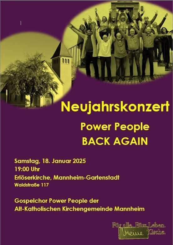 Der aus der Mannheimer Residenz stammende sympathische Chor Power People, unter der Leitung von Daniel Fiess, ist im Sommer 2009 als Chorprojekt der Alt-Katholischen Pfarrgemeinde Mannheim–Ludwigshafen entstanden. Die Sänger haben sich schnell zu einem festen Chor mit aktuell 13 Sängerinnen und Sängern entwickelt. Das musikalische Repertoire umfasst nicht nur Gospels und Spirituals, sondern reicht über moderne geistliche Lieder in verschiedenen Sprachen bis hin zu diversen Songs aus Pop und Jazz. Neben den regelmäßigen Chorproben finden regelmäßige Workshops zu den Bereichen Stimmbildung, Choreografie statt. Obwohl der Chor in der Alt-Katholischen Pfarrgemeinde beheimatet ist, gehören die Chormitglieder unterschiedlichen Konfessionen an und unterstützen somit den ökumenischen Gedanken.